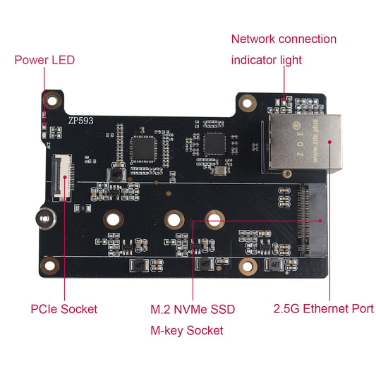 ZDE ZP593 PCIe to 2.5G Ethernet Network Port PCIe to M.2 Key M NVMe SSD HAT Adapter Expansion Board for Raspberry Pi 5
