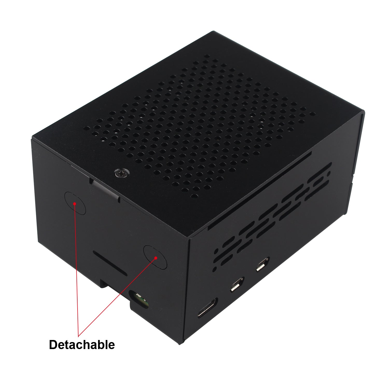 This aluminum case can access all ports of Pi 5, including USB-C power jack, micro HDMI ports, USB ports, Ethernet jack, micro SD card slot, power button, 4-lane MIPI DSI/CSI connectors.