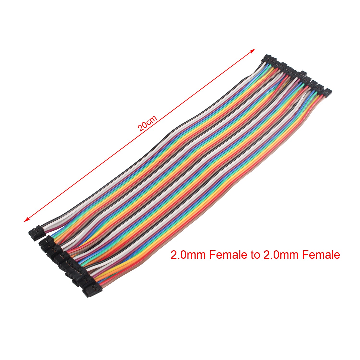 ZDE 40PCS 20cm 7.87inch Breadboard Jumper Wires Female to Female 2P Multicolored Dupont Wires 2.0mm to 2.0mm Pitch Ribbon Cable Compatible with Arduino Projects and Raspberry Pi