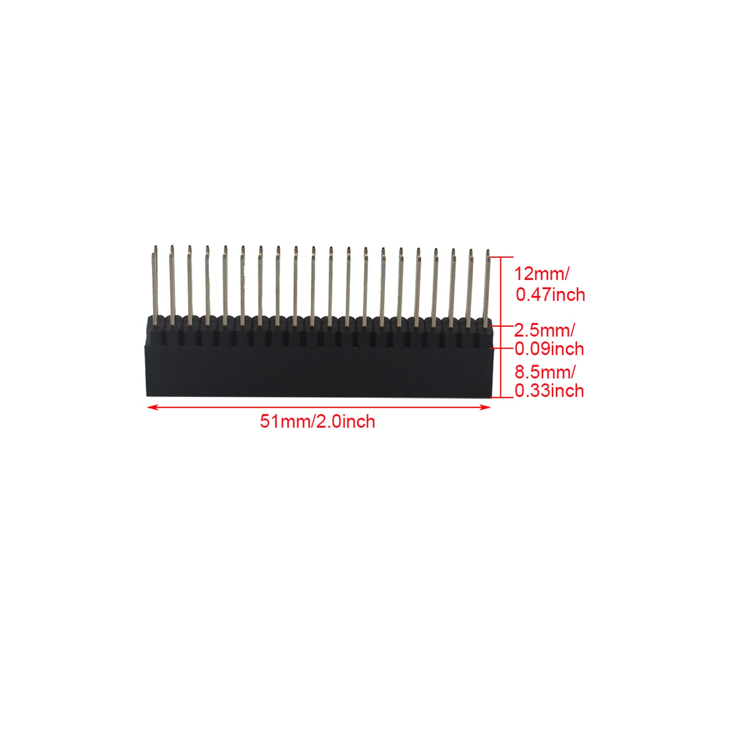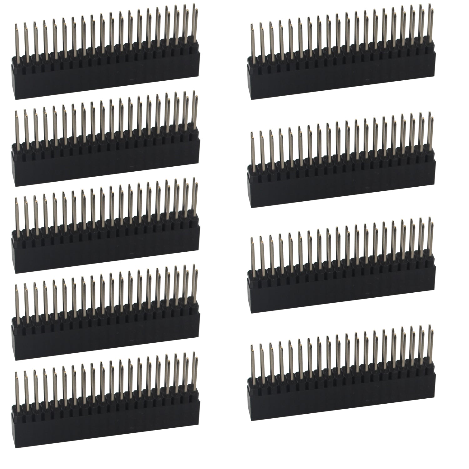 ZDE 9PCS 2x20 40 Pin Stacking Female Header 0.1 Inch Pitch Dual Row Extra Tall Headers Connector for Raspberry Pi Arduino PCB Breadboard