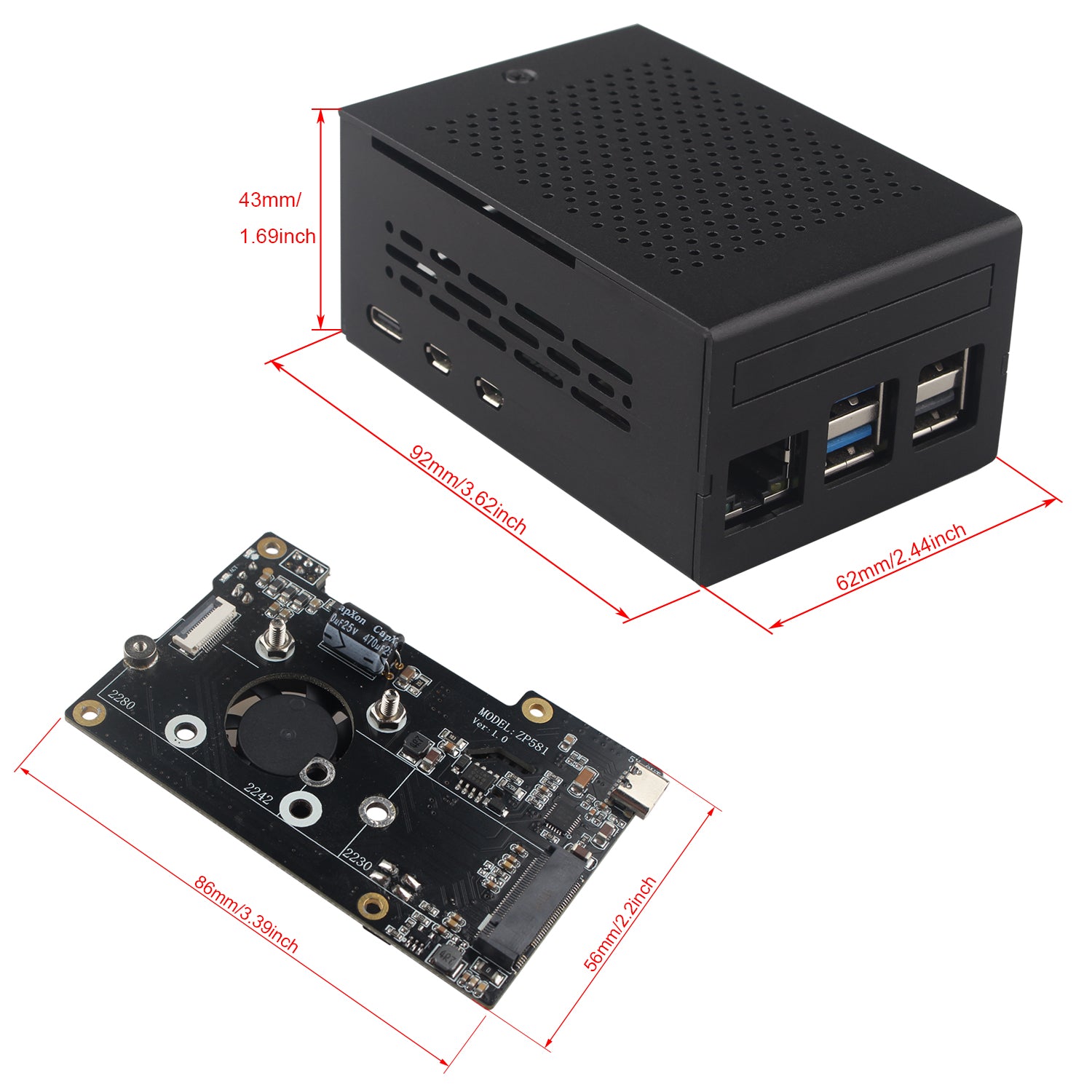 The enclosure is made of lightweight and durable aluminum material, offering excellent protection and heat dissipation for the Raspberry Pi 5 and expansion board. It can access all ports of Pi 5.