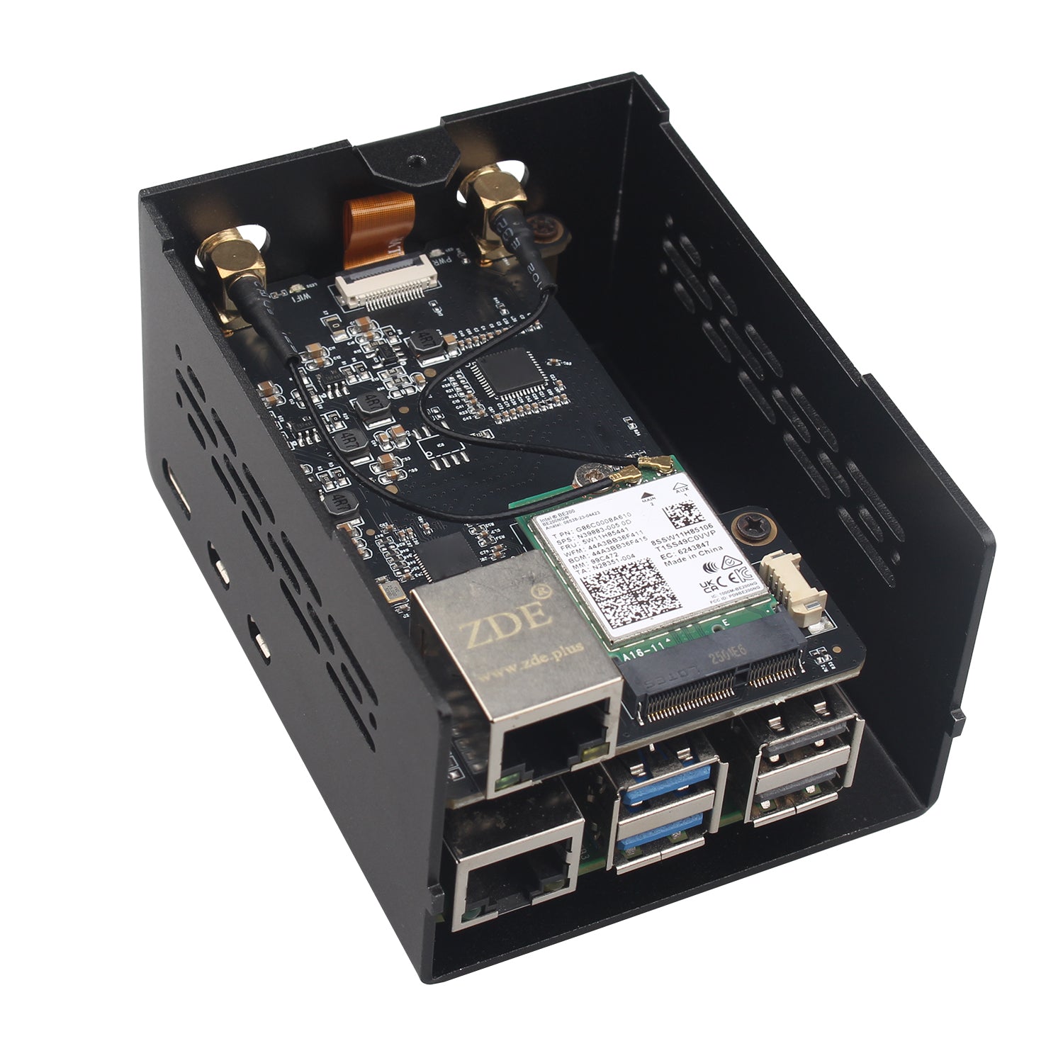 ZDE ZP596 PCIe to M.2 E Key WiFi7 6 6E 5 PCIe to 2.5G Ethernet Network Port HAT Expansion Board with ZC506 Aluminum Case for Raspberry Pi 5
