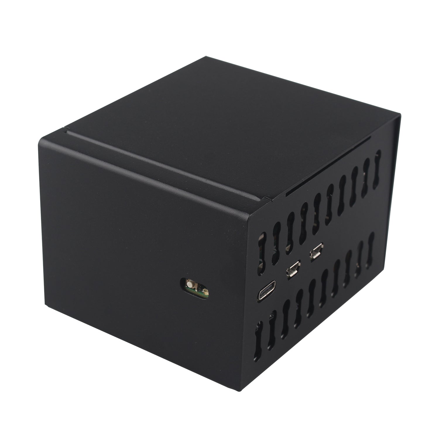 The enclosure is specifically designed for ZP597 shield with 4 Ethernet Ports. It is made of lightweight and durable metal material, which can offer excellent protection and heat dissipation for the Raspberry Pi 5 board and expansion board.