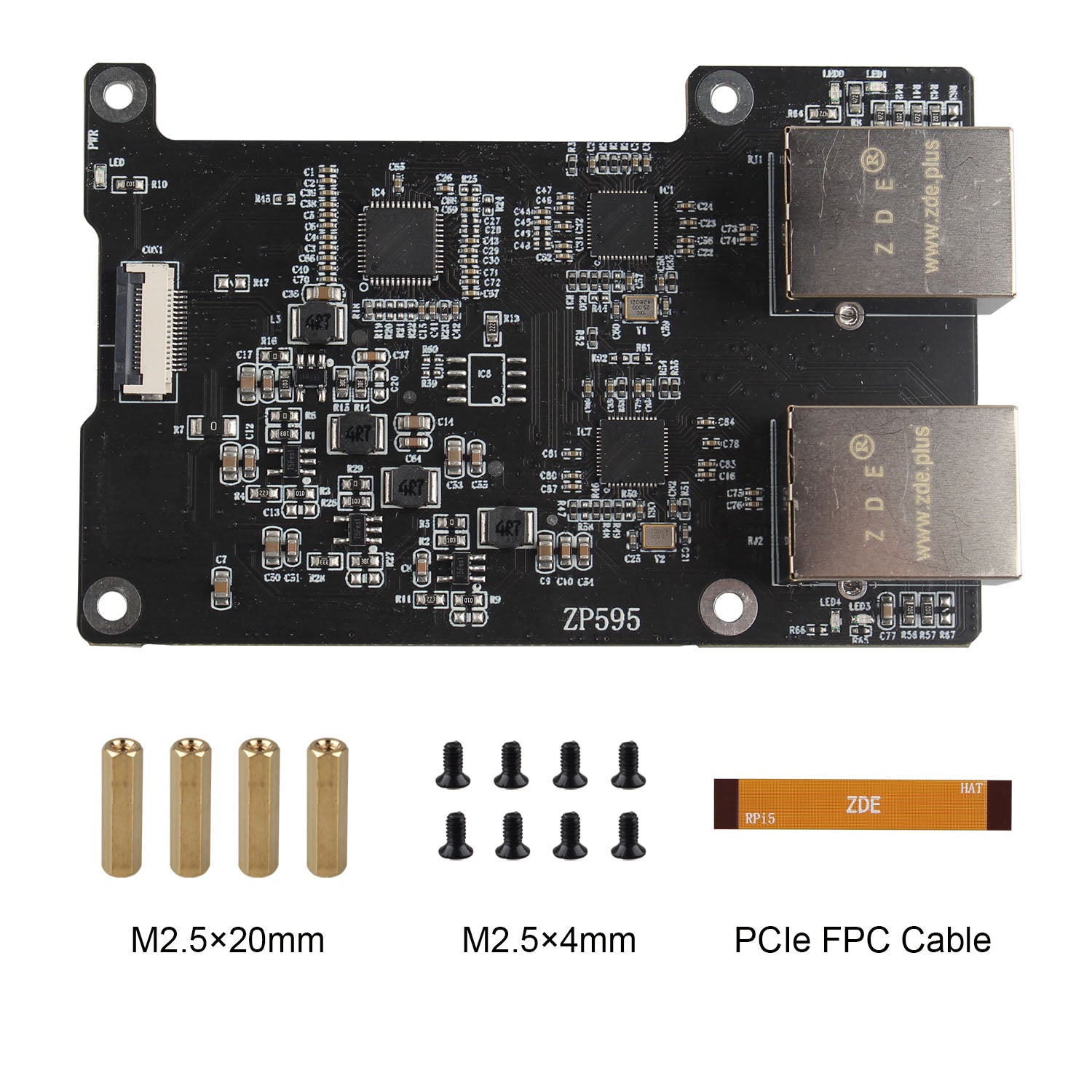 ZDE ZP595 PCIe to Dual 2.5G Ethernet Network Port HAT Adapter Expansion Board for Raspberry Pi 5
